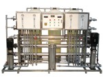 饮用纯净水制取装置由预处理部分、反渗透主机和纯水消毒储存和灌装等几部分组成。采用单元组合结构,目的是减少设备占地面积,便于运输及现场装调试,具有占地小、安装快、外观漂亮、操作、维修方便等优点,设备部分均选用Ocr18Ni9(304)不锈钢制作,管道低压部分采用食品级PVC-U,高压部分采用优质不锈钢制作(小型设备也选用优质食品级PVC-U),主要部件(膜、泵、仪表等)均由国内外著名专业厂商提供,整机性能达到国外同期水平!