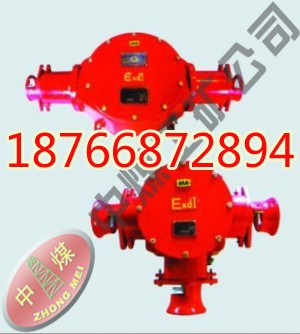 接线盒的隔爆外壳为钢板结构,盖采用螺栓压接形式,两侧为电源引线端,并设有控制线引入装置。壳体内设有三个主接线端子,接线柱上压板将电缆头压接。基座为高压电瓷,并设有一个辅助接线端子。