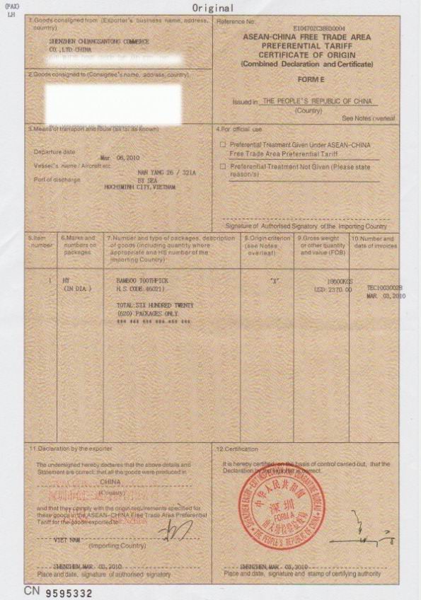 中国-东盟自由贸易区优惠原产地证书(以下简称FORM E证书)共有十二栏,各栏填写方法如下: