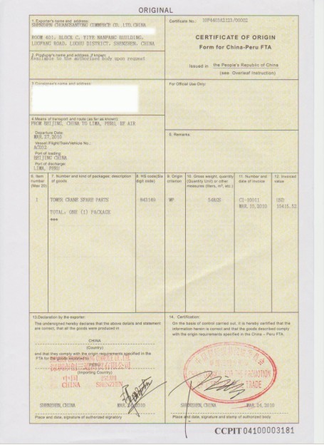 2010年3月1日,《中国-秘鲁自由贸易协定》正式生效,这标志着中国-秘鲁自贸区货物贸易降税进程正式启动,为双边贸易发展提供了新的机遇和更广阔空间。按照国家质检总局要求,各地出入境检验检疫局于3月1日起正式签发“中国-秘鲁自贸区优惠原产地证书”。