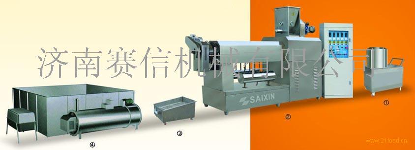 1.拌粉机2.挤压成型机3.风床冷却机4.热风