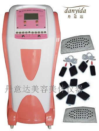 豪华双气囊纤体王(新版)是丹意达美容仪器公司最新开发研制的一部集全身及局部快速减肥于一身的减肥仪器。采用主机是由CPU程序控制主板数码显示,液晶显示并触摸控制的最新科技,本仪器可以同时完成远红外线溶脂与六种扫频生物波工作模式,同时配有32级输出数码控制强度调节,双气囊腹包、大小贴片针对不同部位减肥,以适用不同年龄不同人群,并把扫频生物波与宽频远红外线溶脂柔和在美体胶片上,从根本上解决脂肪堆积。从而呵护更体贴、控制更完善、设置更专业、功能更强大、效果更显著、外观更豪华,为顾客提供安全、有效、快速的美体服务,全面帮助顾客恢复完美的身材,使其独特的功能是目前市场上的减肥仪器是无可比拟的,已成为专业美体中心的首选。