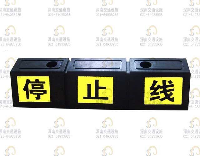 3. 表面贴有耐磨、反光亮度较高的黄色成型标贴,使得车位停止器黑黄相间,特别醒目,晚上黄色成型标贴反射光线