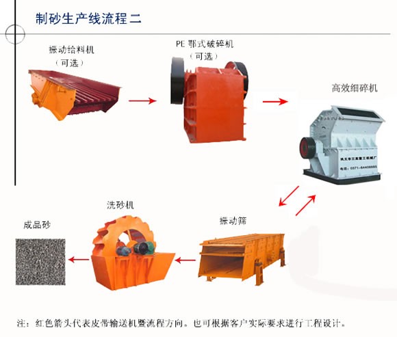 三高砂石生产线是一种生产建筑用砂和石料的专用设备,比传统制砂机节能50%。它可以把各种岩石、砂石,河卵石制成附和各种粒度的建筑用砂,砂质粒度均匀、耐压强度高,远比天然砂、普通锤式打砂机生产的砂更符合建筑要求,更能提高建筑质量。设备具有性能可靠、设计合理、操作方便、工作效率高等特点。人工砂石生产线经由喂料机、颚式破碎机、破碎后分别进入(制砂机、反击式破碎机)通过振动筛分级后得到所需求的多种规格石子,砂子经由高效洗砂机后得到您所需求的成品砂,