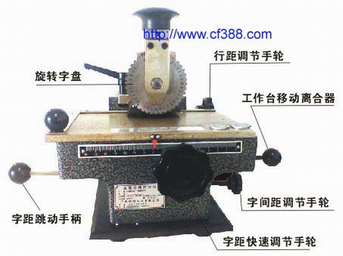 经高频淬火热处理的合金钢转字盘在外力作用下(用手压或橡皮锤砸),在金属标牌上刻印出有一定深度(0.1~0.3mm深)的字母或数字;