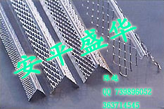 本实用新型公开了一种建筑物阳角护角网,它由连接筋和拉接网组成,拉接网通过连接筋形成≤90°的角,拉接网上设有与连接筋平行的圆孔。本实用新型能够保护加固阳角,防止阳角脱落、变形、开裂,成本低廉、结构简单、操作快捷且方便施工,具有广泛的实用性。护角网以镀锌钢或不锈钢扩张拉伸两翼而成。护角网的扩张两翼可以与灰泥牢固结合,用于在建筑物中形成光滑,平直,简洁的角部,同时保护角部防止碎裂,撞击,损坏.常备长度2.4m-3m,也可依客户要求制做。