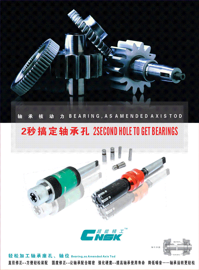 公司专用生产用于轴承座、轴承轴位加工的滚压刀具——轴承座孔滚压刀、滚压头、滚镗头、滚压工具,是轴承安装使用前的加工刀具,能轻松加工到轴承需要的安装尺寸精度,再也不用为——轴承座孔、轴承轴位的尺寸精度难控制、难加工而烦恼了;不用为——轴承座孔、轴承轴位的尺寸精度不到位,可能损坏轴承而担心了;不用为——轴承座孔、轴承轴位的尺寸精度不到位,维修时拆装麻烦担心了。 让你轻松加工轴承座孔、轴承轴位!!!! 轴承核动力4大好处: 1、尺寸修正——方便轴承轻松装配 2、圆度修正——与轴承配合更精密 3、强化硬度——提高轴承精度保持性 4、降低噪音——让轴承运转更轻松 公司拥有6000平方花园式厂区,先进的设备,26项刀具专利,年产值1.2亿元。完善的销售制度,确保每位经销商的权益,欢迎各大轴承商加盟!!!