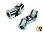 特点:使用于联结空间同一平面上两轴线夹角β≤45°的传动场合。可分为单十字型、双十字型、可伸缩型和法兰型。带快速锁紧接头更换方便,节约安装时间。十字轴头采用衬套联接,具有传递扭矩大,使用寿命长,应用范围广等特点。中间采用方块体加滑动轴承可传递大扭矩,采用滚针轴承可提高转速,理论达到4000转/分钟。特殊设计更可达到8000转/分钟。