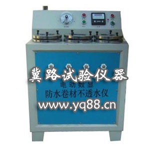 我厂生产的电动防水卷材不透水仪,本仪器是检测石油沥青油毡及弹性沥青防水卷材不透水的仪器,可满足GB328所规定的试验要求。可供教学科研,检测中心,生产等单位使用。最大压力 0.4Mpa:可试件数 (3件1组);透水盘内径 Ф135mm;电压功率 220V~150W。同时供应混凝土水泥仪器、公路土工仪器、沥青防水仪器、化学分析仪器、试验机、天平、试模、筛具等;我们可为公路、铁路、桥梁、拌站、市政、大专院校、工程质量检测中心提供试验室全套试验仪器与检测仪器设备。公司网址:http://www.yq88.cn 联系人:戈兆新 电话:0317-4639079、13703178948 QQ:359003599