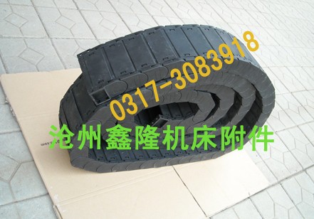 (3)单元链节由左右链板和上下盖板组成,拖链每节都能打开,装拆方便,不必穿线,打开盖板后即可把电缆、油管、气管、水管等放入拖链。