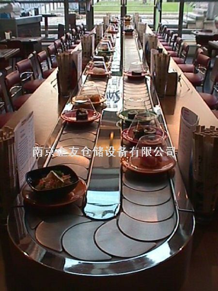 旋转寿司火锅线、回转火锅线主要用于日本料理、韩国料理、西餐厅及自助餐厅等等,旋转寿司火锅线、回转火锅线速度为0-5米/分钟可调节,链板为特制月牙形不锈钢链板,其设备安装后,业主可根据自身情况可进行装修,客人用餐台面可用大理石或实木装修,旋转寿司火锅线、回转火锅线设备还可根据业主餐厅布置的要求,来做不同形状,旋转寿司火锅线、回转火锅线其价格合理,外观精美,无噪音等特点.