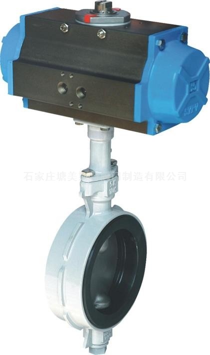 1;气动蝶阀由罗博特RBT气动执行机构和HT1000中线蝶阀组成。可配备智能定位器,实现远距离操纵,有利于整个控制系统的自动化操作。