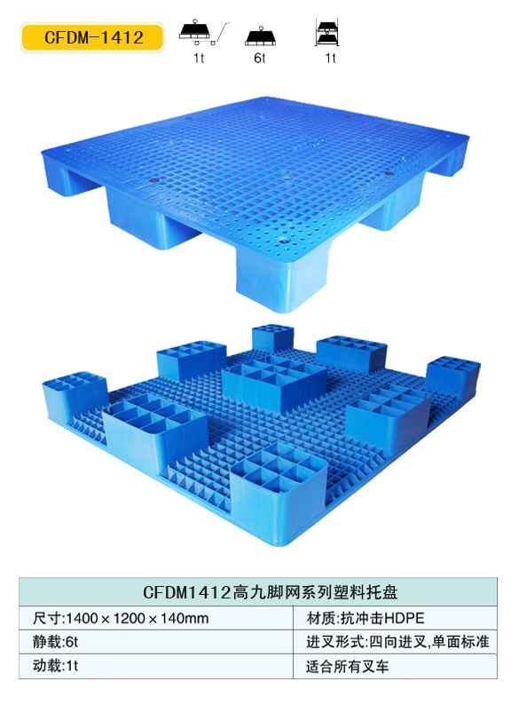 公司采用高强度塑料原料生产的各种规格塑料托盘、仓储垫板,整体承载性好、抗冲击性强、耐温性好。我公司研发人员吸取总结其他托盘生产企业的经验,采用国际先进模具设计软件设计开发的塑料托盘模具,较之其他厂家开发较早的塑料托盘模具,在力学结构、流道分布和外观结构(托盘整体外观样式)方面更趋科学、合理。主要规格型号:1400*1200*150 1300*1100*150 1200*1200*150 1200*1000*150 1100*1100*150 1200*800*160 1100*800*160 1000*800*160 1200*1100*150(mm)等双面、单面、川字底、九脚底、平面、网格、网孔、田字底等规格系列托盘及垫仓板。主要客户名单如下:青岛海尔集团、青岛啤酒集团、金狮啤酒集团、百事可乐饮料集团、四川宜宾天原化工集团、贵州益佰制药集团、黑龙江大庆炼化公司、齐鲁石化公司、南京雨润食品、新疆天业股份有限公司、大成美食(大连)有限公司、内蒙古海吉氯碱化工有限公司、福建省漳州灿坤实业有限公司、嘉里植物油有限公司(胡姬花、金龙鱼花生油)