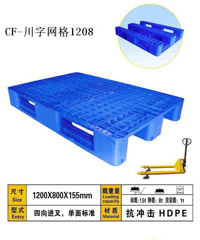公司采用高强度塑料原料生产的各种规格塑料托盘、仓储垫板,整体承载性好、抗冲击性强、耐温性好。我公司研发人员吸取总结其他托盘生产企业的经验,采用国际先进模具设计软件设计开发的塑料托盘模具,较之其他厂家开发较早的塑料托盘模具,在力学结构、流道分布和外观结构(托盘整体外观样式)方面更趋科学、合理。主要规格型号:1400*1200*150 1300*1100*150 1200*1200*150 1200*1000*150 1100*1100*150 1200*800*160 1100*800*160 1000*800*160 1200*1100*150(mm)等双面、单面、川字底、九脚底、平面、网格、网孔、田字底等规格系列托盘及垫仓板。