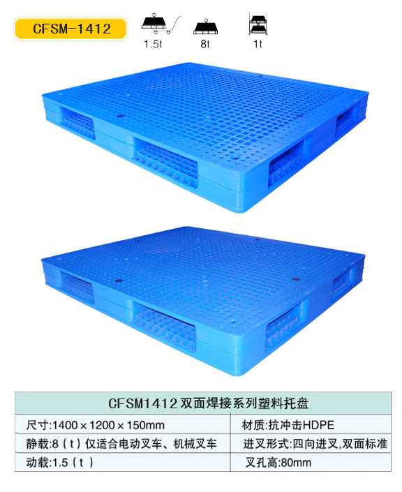 公司采用高强度塑料原料生产的各种规格塑料托盘、仓储垫板,整体承载性好、抗冲击性强、耐温性好。我公司研发人员吸取总结其他托盘生产企业的经验,采用国际先进模具设计软件设计开发的塑料托盘模具,较之其他厂家开发较早的塑料托盘模具,在力学结构、流道分布和外观结构(托盘整体外观样式)方面更趋科学、合理。主要规格型号:1400*1200*150 1300*1100*150 1200*1200*150 1200*1000*150 1100*1100*150 1200*800*160 1100*800*160 1000*800*160 1200*1100*150(mm)等双面、单面、川字底、九脚底、平面、网格、网孔、田字底等规格系列托盘及垫仓板。