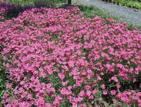 昌盛苗木基地长期供应常夏石竹,常绿,叶形优美,花色艳丽,且花具芳香,花期长,被广泛用于点缀城市的大型绿 地、广场、公园、街头绿地、庭院绿地和花坛、花境中,深受人们的喜爱。还被人们用于盆 栽,置于家中,用做家庭赏花。常夏石竹这一称素“冬不枯、夏不伏”的地被植物,日前越来越被现代化园林城市所认同, 并走进城市,走进都市人美好的生活环境中。