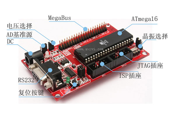 AVR ATmega16 ATmega32 核心板系列是为加快开发进度而设计,用户只需要考虑自己的应用而不需要关心AVR ATmega16 ATmega32 核心板系统,同时AVR ATmega16 ATmega32 核心板可以作为有一定其他芯片开发经验的开发人员入手,也可以作为产品的核心直接使用,AVR ATmega16 ATmega32 核心板包含所有最小系统基本电路,其货号:AVRVi000013。