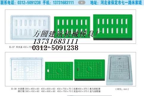 路肩边缘石模具,路肩石模具,路缘石模具,路侧石模具,路沿石模具,路牙石模具,路边石模具,大路牙模具,缘石模具,路肩板模具,站石模具,道牙,马路牙子模具,马路侧石模具,马路道牙模具,路沿石钢模具、路岩石侧石、高速路隔离带平石、心状坡型侧石、花坛侧石、路面平石、平面护坡、侧石排水沿石采用本厂一套模具,班产(8小时)可生产40井盖,井圈、水篦可连续不断生产,能使应用单位抢工期、增速度、出效益,而不受脱模时间限制。应用本公司产品的独特技术,可使井盖表面光滑度好,文字图案清晰,并可按技术转让单位的要求进行设计,使应用单位的产品、品牌和使用功能合而为一河北保定方圆建筑材料厂专业生产制砖机械,制瓦机械,各种彩砖模具,彩瓦模具,路牙石模具,井盖模具,钢纤维,氧化铁红,光亮剂水泥瓦模具等竭诚欢迎新老客户光临选购我厂新研制的井具井篦模盒,可生产各种规格的高强度钢钎维水泥井盖井篦模具,电缆检查水泥井盖井篦模具.光缆检查水泥井盖井篦模具.防盗检查水泥井盖井篦模具.中国网通水泥井盖井篦模具.中国移动水泥井盖井篦模具.自来水水泥井盖井篦模具. 污水水泥井盖井篦模具.雨水水泥井盖井篦模具.污水水泥井篦模具产品光亮自然,色彩多样,广泛用于道路。小区。广场及有线电视。通讯。供气。供水等。只需投入壹万元。加简易厂房,既可建成一个效益可观的钢钎维预制构件生产线。彩砖液压机,制砖机,混凝土彩砖机,彩砖压力机,环保渗水砖,彩砖模盒,塑料模盒,井盖模具,水泥井盖,钢纤维 高速铁路盖板模具高速铁路电缆盖板模具高速铁路桥梁盖板模具高速铁路鹅卵石盖板砌砖机,免烧砖机,液压制砖机,多孔砖机,空心砖机,砌砖成型机,多孔制砖机,水泥制砖机,水泥砖机,制砖机械,免烧制砖机,混凝土制砖机,粉煤灰制砖机,压砖机,免烧砖机 我厂为您提供各种型号的水泥井盖钢模具。我厂科研人员经过几年开发、研制的新产品,产品以钢筋为骨架,并加有特制的钢纤维复合材料,强制搅拌,振捣成型,本产品采用的新材料、新工艺,使构件的抗压、抗折强度高于普通铸造铁井具的几倍以上,并具有防盗、防腐、减小噪音等功能,远远超过了铸造铁井具的质量标准要求。就目前而言,钢模具是最理想、较先进、是其他模具(如橡胶模具、塑料模具、玻璃钢模具)所不能比拟的。 钢模具的特点是: