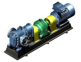 原动力输出后经减速器由主动轴输入,转子通过主、从动轴在同步齿轮的带动下进行方向相反的同步旋转。使泵腔的容积不断变化,形成吸入和排出区。达到输送介质的目的。