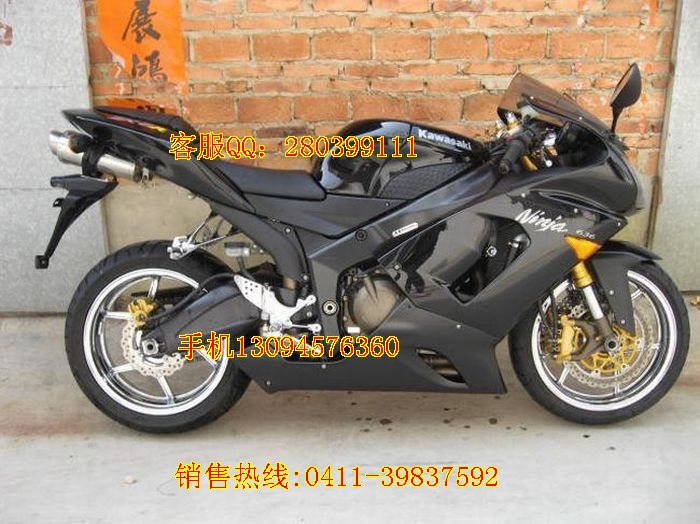 大连龙兴集团摩托车行出售进口川崎ZX-6R摩托车价格5300元 川崎KawasakiZX-6RR规格表引擎形式:四冲水冷DOHC16活瓣并列4汽缸缸径x冲程67.0x42.5mm 压缩比13.0:1 总排气量:599cc 最高马力:118pspm(ramair113ps/13,200rpm 最大扭力:6.6kg-m/12,000rpm 车架形式:铝合金框式翼梁车架传动系统湿式多片6前速链传动燃油供应38mm电子燃油喷注系统前倾角(R):24.5° 拖曳距(T):95mm 前悬挂系统:41mm倒立套管前叉全功能调较120mm行程后悬挂系统:Uni-Trak单筒连杆全功能调较135mm行程轮胎(前):120/65-17 轮胎(后):180/55-17 前掣动系统:2x280mm剎车碟配4活塞对向卡钳后掣动系统:220mm单碟配单活塞卡钳长x阔x高:2025x720x1100mm 轴距:1400mm 座高:825mm 干重:161kg 油缸容量:18L