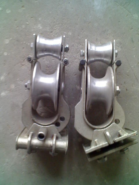 双轮放线滑车 用途:用于展放大截面单根导线,接续管可从轮槽中通过 特点:结构紧凑、便于作业