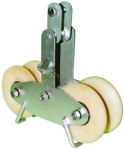 采用前后双轮弧垂小不伤导线,轮槽宽,可通过各种连接器,按材质分有铝合金和MC尼龙两种。