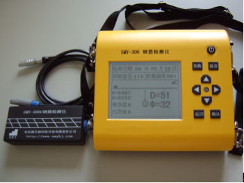 ◆ 仪器重量:400g 探头重量:100g 检测方法 1、 选择测区:尽量选择表面比较平整的区域,以便提高检测精度,如果表面过于粗糙,要在检测前清理平整。 2、 钢筋定位:探头位于钢筋正上方时信号值最强如图-1,在扫描过程中听到仪器报警声后往回移动探头,当R值和H值近似相等的时候,探头的正下方即为钢筋。 3、 探明钢筋分布: 分别在相互平行的两组测线上(A和B;C和D)进行扫描确定钢筋的位置,将对应的两点连线;即可确定该测区的钢筋分