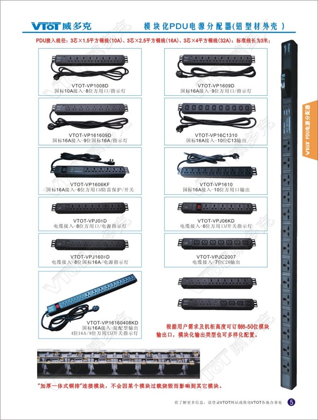 PDU指的的是机柜电源分配器,它相对于普通插座具有安全质量好、承载功率大、设计安排更合理、品质和标准更严格、安全无故障寿命长、各类漏电、通电过载保护更优秀、插拔动作频繁而不易损坏、热升温小等多方面的优点,也从根本上杜绝了普通插座的因接触不良、负荷小而造成的频繁断电、烧毁、火宅等安全隐患;适合对用电要求严格的行业客户使用。