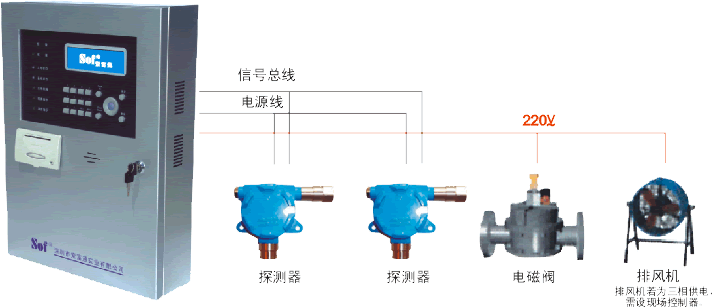 §.总线制连接:控制器与探测器之间采用三总线制连接(两根电源线,一根信号线)