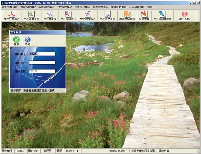 信华ERP生产管理软件塑料包装版满足企业从接单、下生产单、生产审批、物料消耗采购、材料领用、生产过程跟踪、生产完成入库、送货以及所产生的应收应付业务和所有管理报表,进行全过程的规范化管理,让塑料包装企业从根本上解决了困扰企业大量订单生产中进度控制等生产管理前沿问题。