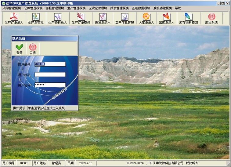 信华丝印移印生产管理软件是广东信华软件科技有限公司针对丝印移印行业的“订单数量多、交货期短”的行业特点,开发的一套专业的丝印移印管理系统,可以满足丝印移印企业从接单、下生产单、生产审批、物料消耗采购、材料领用、生产过程跟踪、生产完成入库、送货以及所产生的应收应付业务和所有管理报表,进行全过程的规范化管理。