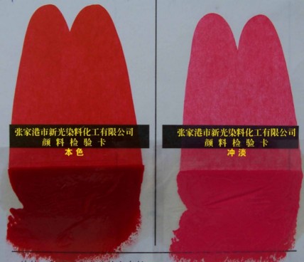 颜料性能: 黄光红色,单偶氮,2,3-酸锶盐色淀类颜料。具有良好的耐晒性、耐热性、耐碱性和渗化性色光介于P.R.48:1和P.R.48:2之间。