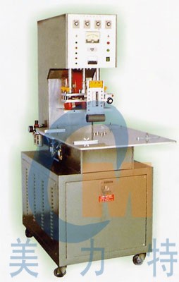 利用的是高频熔接的原理,由电子管自激振荡器产生高频电磁场,被加工塑胶件在上、下电极间的高频电磁场中,其内部分子被极化而相互运动磨擦自身产生热量,在模具的压力下达到熔接的目的。利用高频能量把两件或多件塑胶工件熔接起来,透过高周波使物料生热及熔合在一起,经这种熔接方法而成的工件,坚固度和胶料本身的坚固度一样,高周波与热压的最大分别在于前者是透过高频使胶料自身发热,不易因外在热能而损坏胶料表面的光滑,而高周波焊接熔接时间较短,对位方便准确,产品效果稳定,切边圆滑,不泛白,手感极佳,送料、熔接、切断自动完成,可提高生产量,操作方便简单,生产效率高,可自动成型。