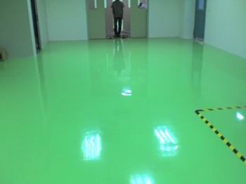 ⑥自流平面漆:用自流平型环氧面漆均匀镘涂一道,完工后整体地面达到光亮洁净,颜色均一,无空鼓;