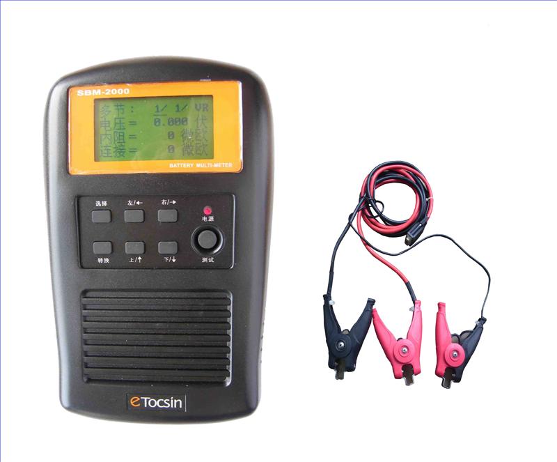 SBM系列测试内阻的最大特征是使用一套带功率插头的三线电缆(SBM1000及SBM1500系列为二线电缆),其中两条大电缆配红、黑二个大夹子,小电缆配一个红黑夹(SBM2000或SBM1500系列黑色夹子)夹在被测电池负极柱上,黑色大夹子在下节电池的正极柱上。
