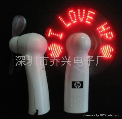 该产品是在原闪光风扇的基码上加以改进更新,现在闪出的可以是文字、图片、各用广告用语等,而且性能稳定,在承受范转内允许震、撞、碰。