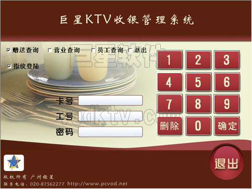 巨星KTV收银管理系统是专门针对各种KTV,夜总会,酒店等娱乐场所而设计的专业级收银管理系统,是一个集前台收银、POS收银、前台咨客、经理查询、后台管理、仓库管理、包房点酒水、出品控制于一体的功能完善的收银管理系统。