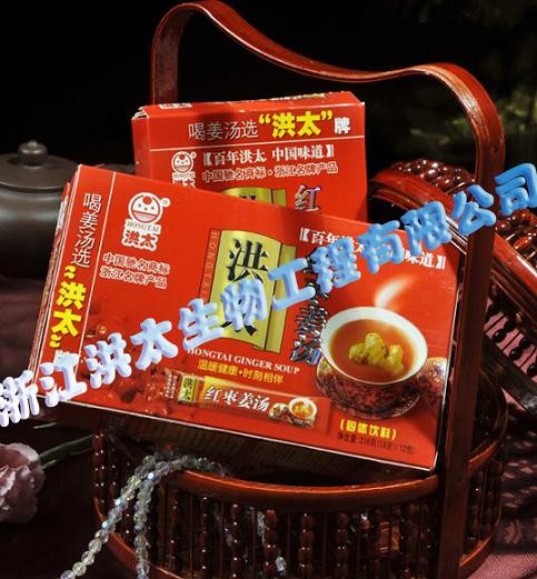 “Ginger Soup”of Hongtai brand-a new-style health drink, adopts good material which is brown sugar and the finest selection of alpine ginger,in strict accordance with pollution-free production technology, scientific and reasonable formula, the application of advanced technology production made.