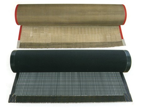 我司引进先进的进口织机,采用优质的高强度进口玻璃纤维及凯芙拉(芳纶)为编织基材。先编织成高强度的网状基布,再披覆一层具有优良特性的铁氟龙(PTFE)树脂,制成铁氟龙网格输送带的基布。以特有的生产工艺加工成各种规格的透气烘干输送带。
