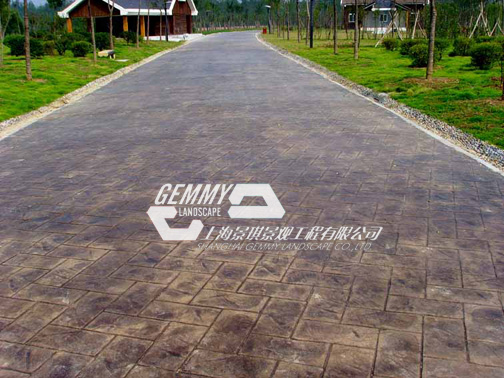 2. 用硬化剂材料制作的彩色压模地坪具有抗耐磨、防滑、抗冻、不易起尘、易清洁、高强度、耐冲击、且色彩和款式方面有广泛的选择性、灵活性、成本低和优质环保等特点,是目前园林、市政、停车场、公园小道、商业街区和文化娱乐设施领域的理想选择。