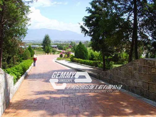 2. 用硬化剂材料制作的彩色压模地坪具有抗耐磨、防滑、抗冻、不易起尘、易清洁、高强度、耐冲击、且色彩和款式方面有广泛的选择性、灵活性、成本低和优质环保等特点,是目前园林、市政、停车场、公园小道、商业街区和文化娱乐设施领域的理想选择。