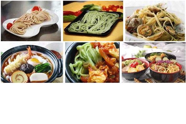 金日来带馅面条机一机多能、一机多用,除了百余种带馅面条外,还可生产所有的普通面条。