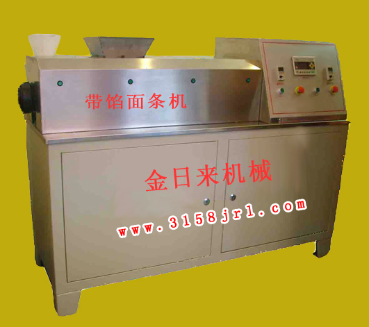 金日来带馅面条机结合现代生活对饮食追求的特点,把各种水果或蔬菜泥汁与各种口味的肉馅(猪肉馅、牛肉馅、羊肉馅、鸡蛋馅、海鲜馅等),同优质的小麦粉(或荞麦粉、玉米粉)、鸡蛋等原料进行科学配比,利用高科技化的专业设备而生产出来的系列营养带馅彩面,其天然的色泽来源于所添加的水果及蔬菜的原始本色,不含任何人工色素、防腐剂和化学添加剂,完全的纯天然食品。新鲜、绿色、无污染的果蔬类产品的添加,确保了金日来带馅面条的生态健康、绿色营养;不同肉馅的添加既增添了面条营养的丰富性,更符合中国人以食进补、以食养生的饮食特性和口味。