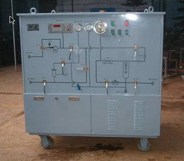 SF6气体回收装置的工作原理是用于主机将设备气室内的SF6气体抽出并压缩至临界压力,使其成为液体后存入贮罐中贮存。在开关室需要时,将贮罐中的气体回充到设备室内。其中还含有干燥系统、净化系统,保证回收的SF6气体中的含水量、含油量及杂质达到国家标准。同时还含有抽真空系统,保证设备中尽量不混入空气和杂质。可用于别的气体使用。