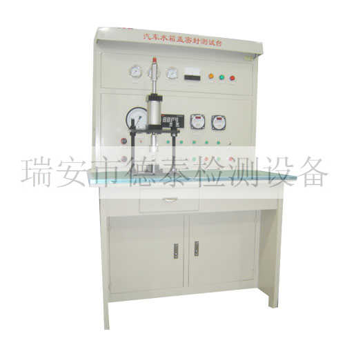 汽车水箱盖测漏检测设备 1、额定功率:400W 2、交流电压:220V3、保压时间:999.9S4、放气时间:99.9S5、气源气压:0-1.6MPA6、调节气压:0-1.0MPA7、测试压力:0-1.0MPA8、重量:185KG9、尺寸(mm):110*68*158(长*宽*高)功用:适用于各种型号的汽车水箱盖的密封性能测试,配置高精度压力传感器,内置短路保护、超压保护,操作简便、工作可靠、输出精度高、综合性能稳定、质量有保证。