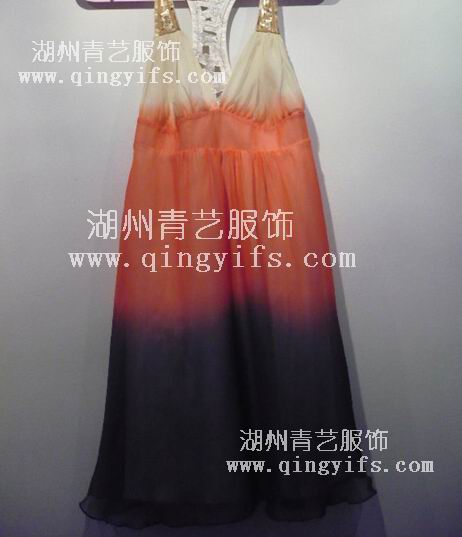 [供应]供应成衣吊染三色吊带真丝礼服加工