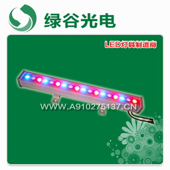 绿谷光电LED洗墙灯、大功率LED洗墙灯,外壳采用铝合金灯体和整体模压加工工艺,确保了良好的散热效果,有效的减少了LED使用过程中的光衰。采用光学级PMMA高效透镜,光损小,照度好。独特的开关恒流源技术,确保了每颗LED稳定工作。照射距离达5-40米,特别适合景观建筑物楼体,户外广场,景观物以及墙面、陈列品刷色。防护等级达IP65,能适应是内外各种温湿度环境。颜色有红色/黄色/蓝色/绿色/白色/七彩变色等效果。通过丰富多彩的光与水的有机结合,产生灵动的感觉,带给您梦幻般的意境。LED洗墙灯产品类型:长任意×55×25、长任意×60×65、长任意×72×66、长任意×48×25、长任意×40×20、长任意×85×66。