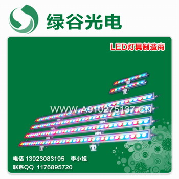 绿谷光电LED洗墙灯、大功率LED洗墙灯,外壳采用铝合金灯体和整体模压加工工艺,确保了良好的散热效果,有效的减少了LED使用过程中的光衰。采用光学级PMMA高效透镜,光损小,照度好。独特的开关恒流源技术,确保了每颗LED稳定工作。照射距离达5-40米,特别适合景观建筑物楼体,户外广场,景观物以及墙面、陈列品刷色。防护等级达IP65,能适应是内外各种温湿度环境。颜色有红色/黄色/蓝色/绿色/白色/七彩变色等效果。通过丰富多彩的光与水的有机结合,产生灵动的感觉,带给您梦幻般的意境。LED洗墙灯产品类型:长任意×55×25、长任意×60×65、长任意×72×66、长任意×48×25、长任意×40×20、长任意×85×66。