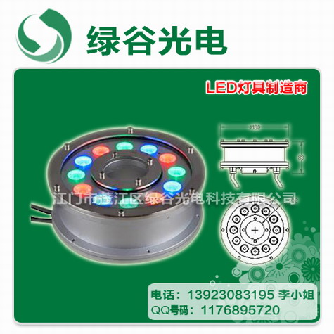 绿谷光电LED水底灯采用优质超高亮LED发光二极管发光或超高亮大功率LED,具有功耗小、产生热量低、寿命长、耐冲击、可靠性高等特点。采用红、绿、蓝三基色发光二极管混色产生七色效果,能满足不同场合对发光色彩的要求。 颜色纯正,发光均匀,穿透烟、雾能力强。在浓烟或浓雾时能清晰看见。是其他任何光源不可比拟的。 寿命长,平均寿命达8万~10万小时。 电源开启和关闭方式有自动控制(光控)和人工控制(手动)两种,客户可按需要自由选择。 安装方便,维护费用低。