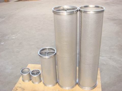 该滤筒是采用冲孔板复合烧结网作为过滤材料,冲孔板复合烧结网根据不同的使用条件与用途对配网层数与目数进行合理的设计。因其是将耐压骨架与过滤网烧结为一体,所以具有更高的机械强度,更为优异的反清洗效果,以及压降损失小的特点,在智能自清洗设备、智能压差式水处理设备以及食品饮料等过滤设备中已得到广泛应用。